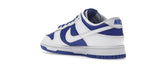 The Nike Dunk Low Racer Blue White features a smooth Racer Blue leather upper with contrasting white leather overlays and Swooshes. A woven Nike tongue tag and heel embroidery nod to the original stylings of the 1985 Nike Dunk. At the base, a matching EVA foam sole completes the design.