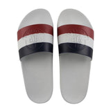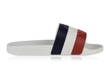 Description- Refresh your casual footwear collection with these logo sliders from Moncler. Crafted in Italy, this classic slider style features a tricolour band to the upper accented with a debossed logo and are finished with a moulded foot bed.